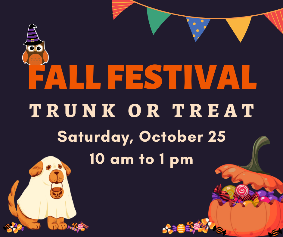 Bring the kids and join us for our Fall Festival & Trunk or Teat! We'll have games, a pumpkin patch, hayride, and lots of candy!!